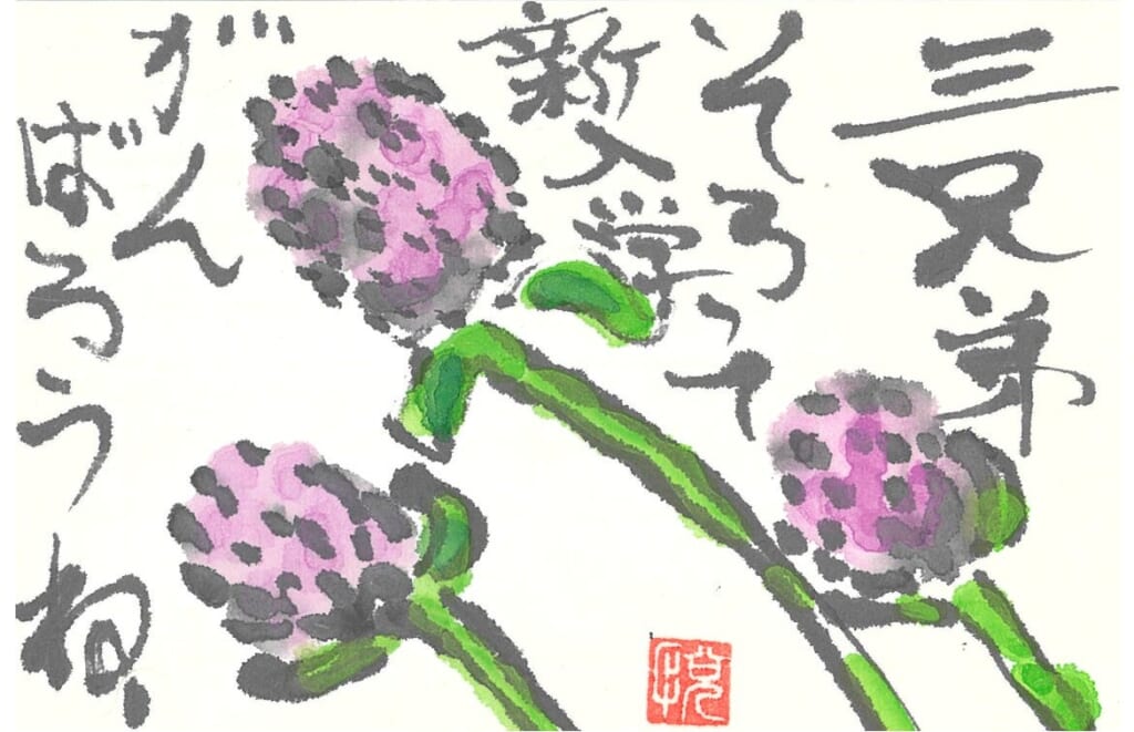 花を観察し、ハガキに花と文を描き、印を押します。自分の気持ちを絵手紙に表わしましょう!