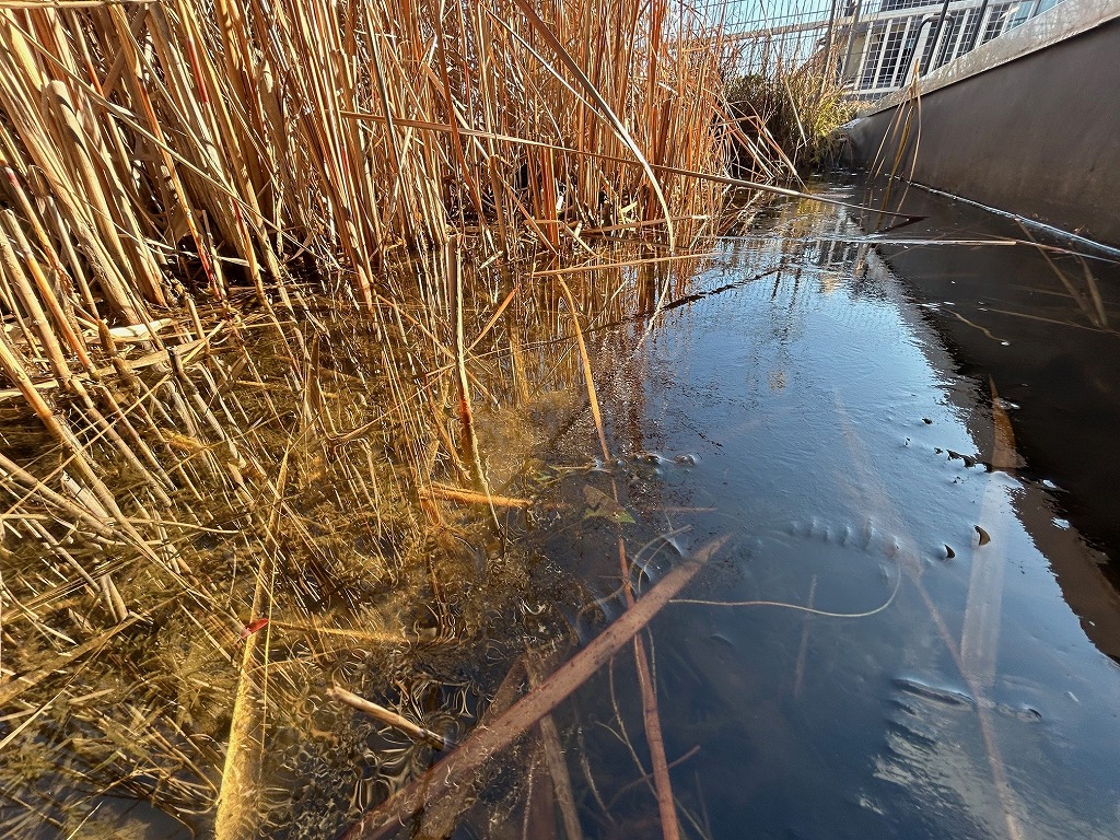 2025年5月3日は大きなフナの姿が見えました!「アシ」と「ガマ」の葉がすくすくと伸びはじめました。