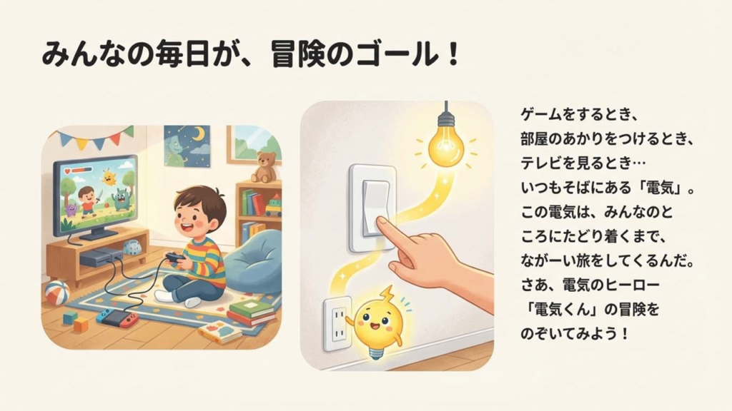 ゲームや物語を通して、電気のしくみやエネルギーの扱い方、環境への影響について、親子で楽しく学ぼう! 参加したお子さんに「エコヒーロー認定証」をプレゼント!
